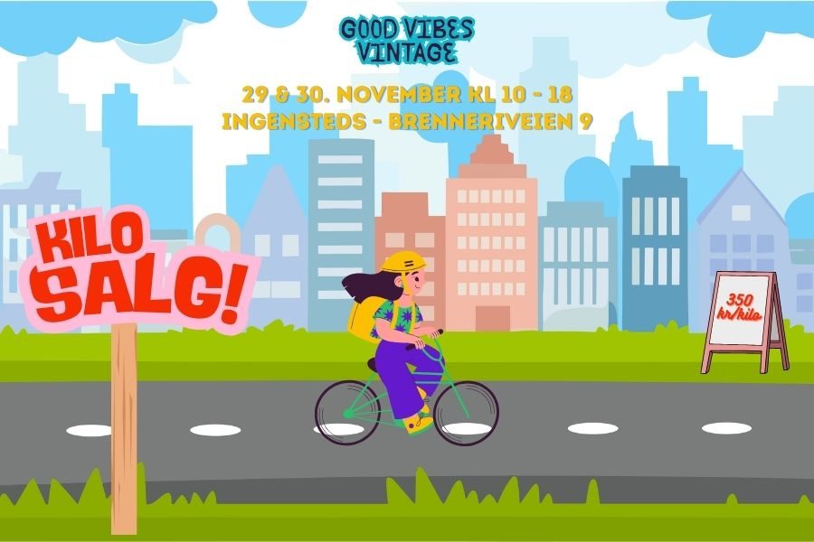 Arrangementet foregår på Ingensteds ved Akerselva og det kommer til å være stappfullt av vintage og det beste er at du betaler per kilo(!). Good Vibes Vintage er en vintagebutikk på Grunerløkka kjent for sitt gode utvalg vintage, spesielt plagg fra 90-tallet og 2000-tallet. Forvent å finne jeans, gensere, t-skjorter og mye mye mer. Det blir fylt på gjennom hele helgen – så her kan du gjøre gode kjøp uansett når du kommer!
