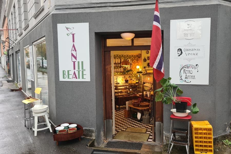 Tanta til Beate i Gamlebyen er et fantastisk univers av brukt, vintage og antikk. Butikken består av to butikker med ulike konsepter. Christinas Vintage som selger secondhand og vintage klær – mye til dame og noe til herre. Og RetroAntikk som selger gamle lamper, service, interiør, små møbler, plakater, pyntegjenstander, musikk og all slags rariteter.
